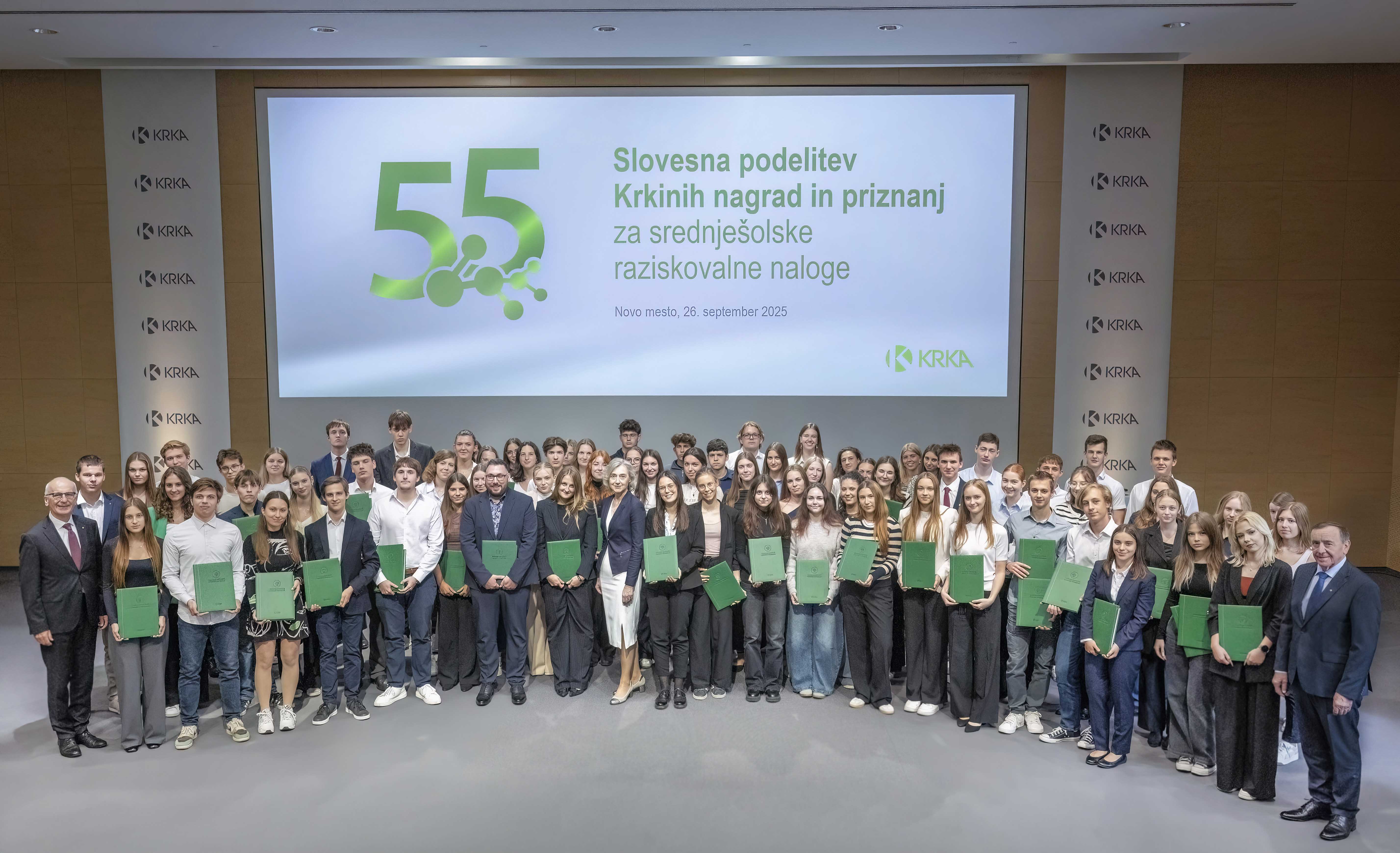 V Krki smo v petek, 26. septembra 2025 podelili Krkine nagrade srednješolskim raziskovalcem. Njihov odziv na razpis se vsako leto povečuje, letos je bilo prijavljenih že 49 nalog iz 20 gimnazij oziroma srednjih šol.